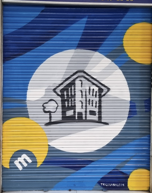 Proyecto de pintado artístico y mejora estética de 15 persianas metálicas realizado en una zona de Barcelona con el objetivo de potenciar el pequeño comercio y mejorar la imagen del barrio.
